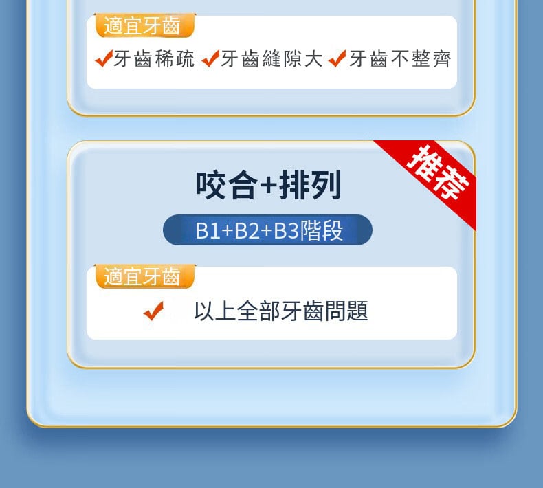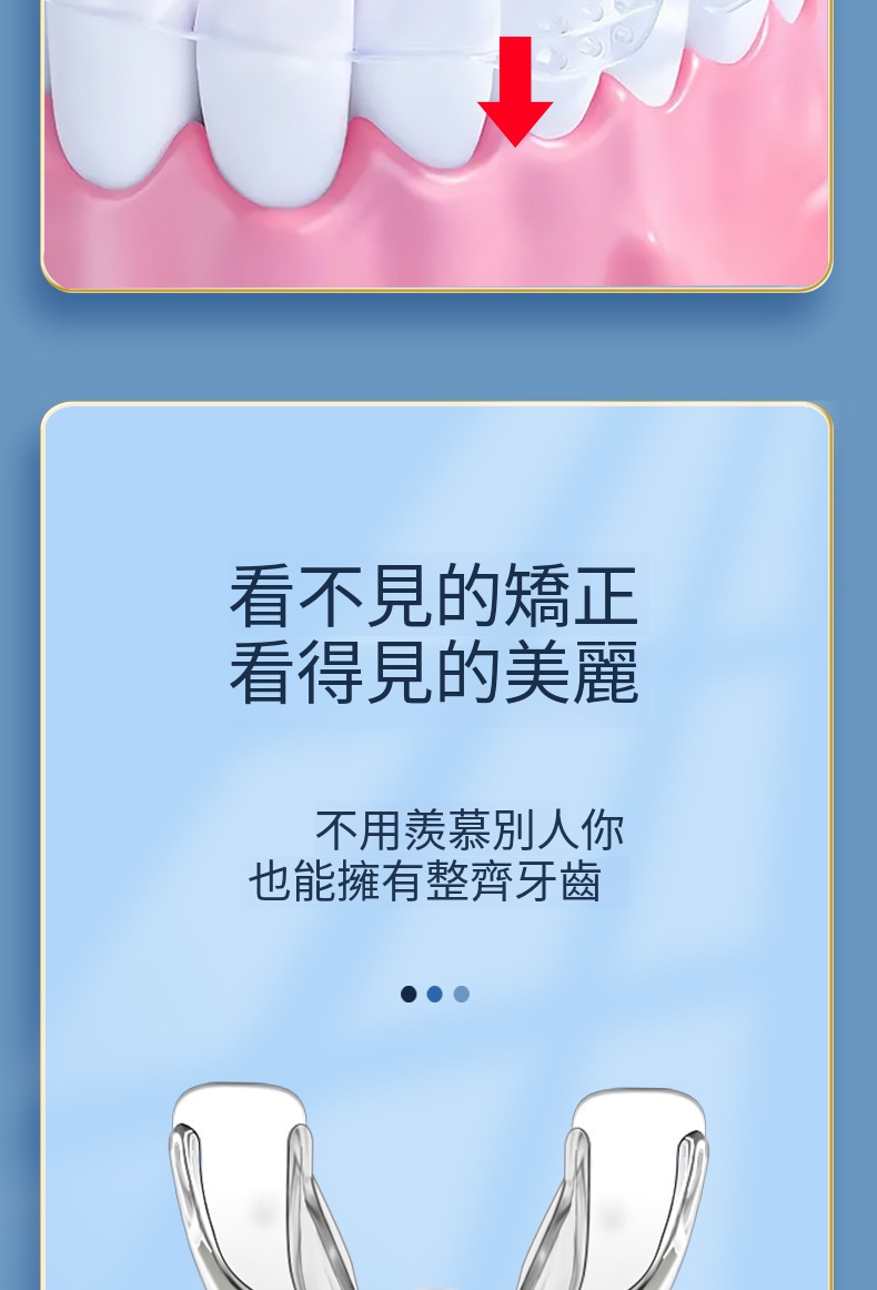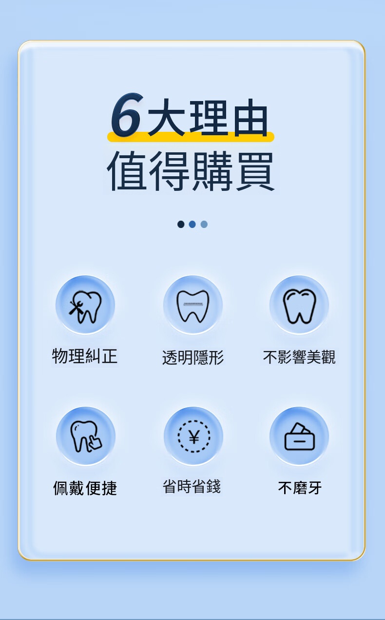 物理糾正,透明隱形,不影響美觀,不磨牙,佩戴便捷,省時省錢,分階段矯正,適合不同大小牙齒形態