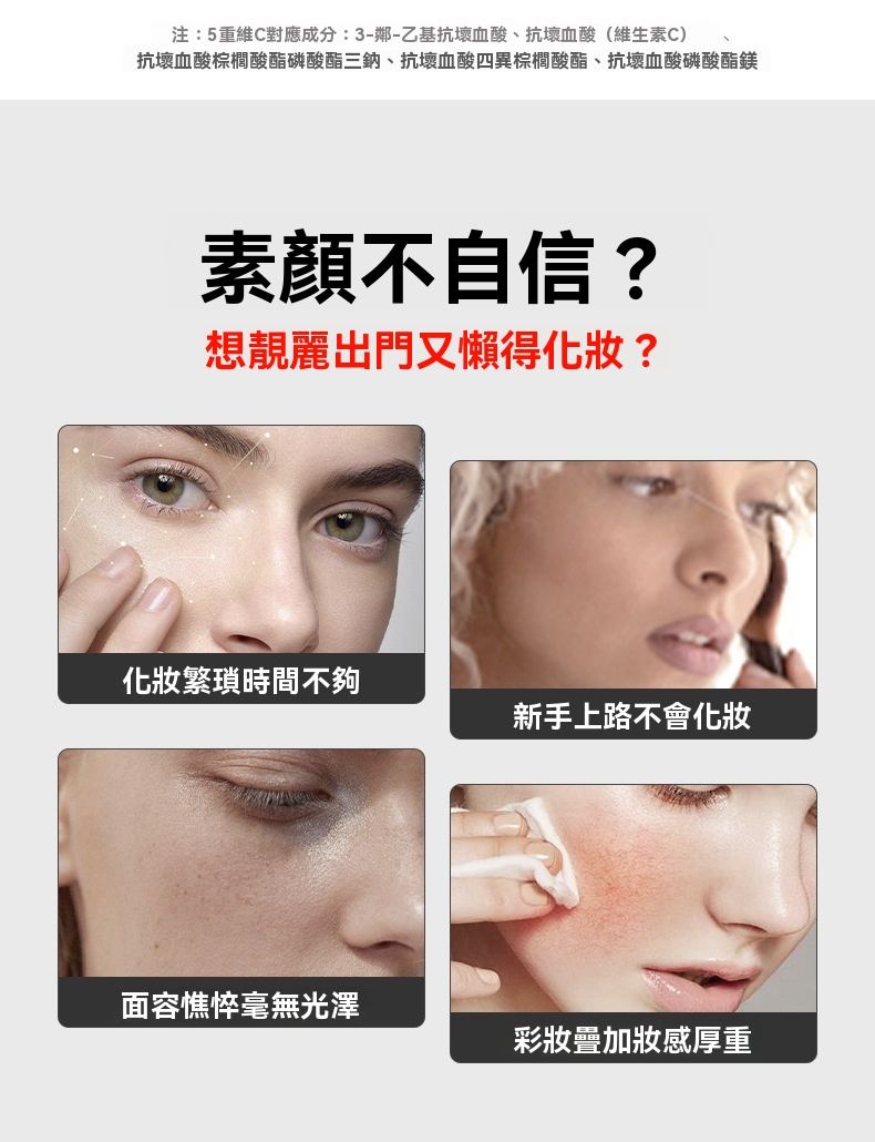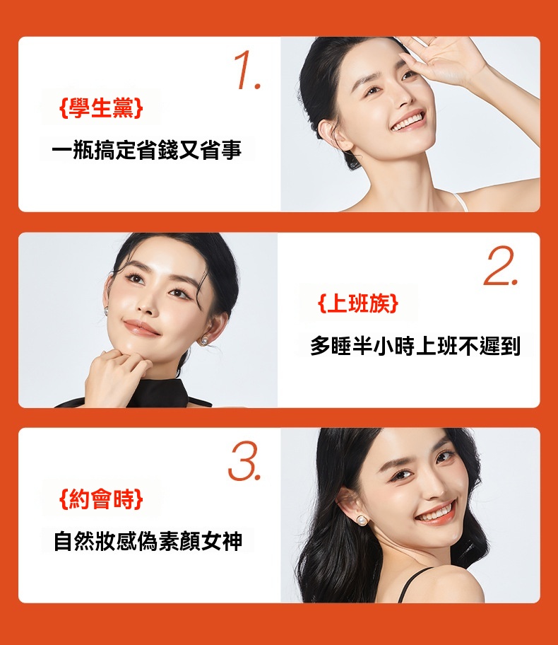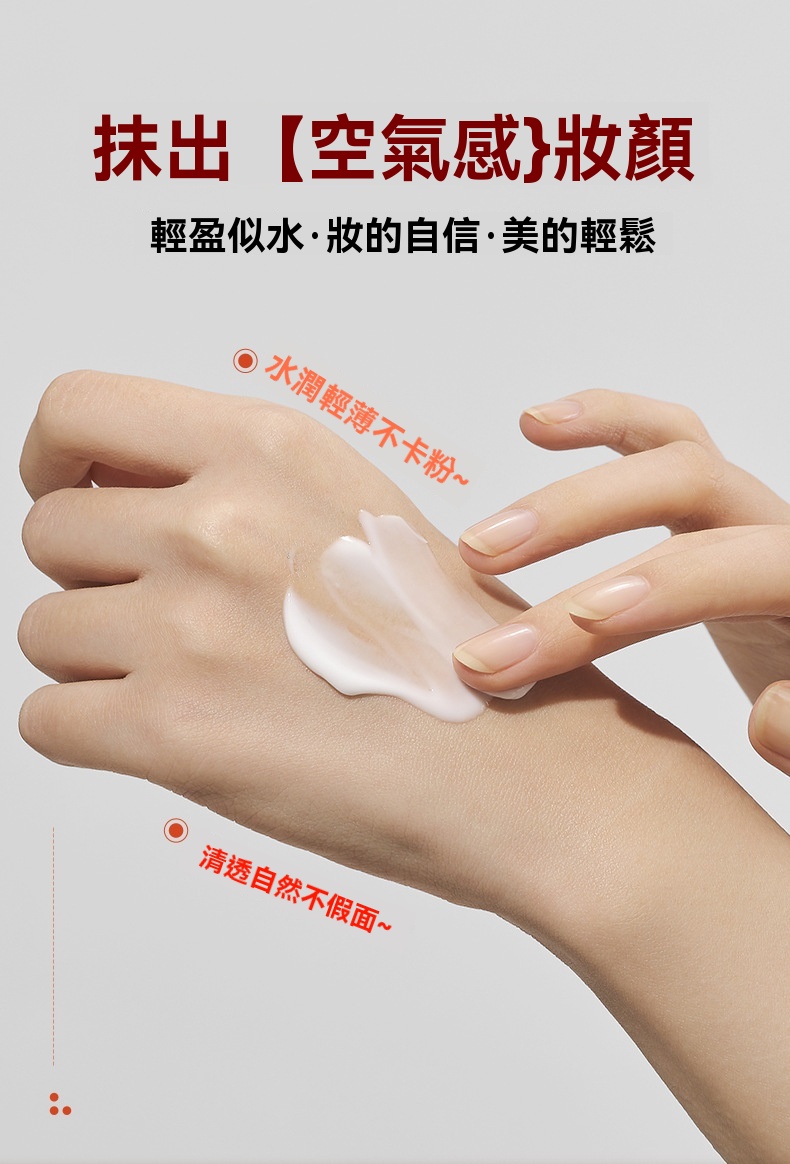 亮白透潤 以養為妝 遮瑕隔離,自然美顏 水潤保濕 無需卸妝,立體光感靚膚配方 層層提靚由內勻淨煥靚!