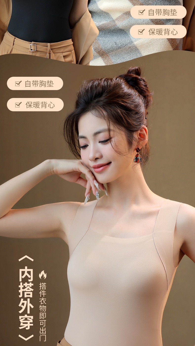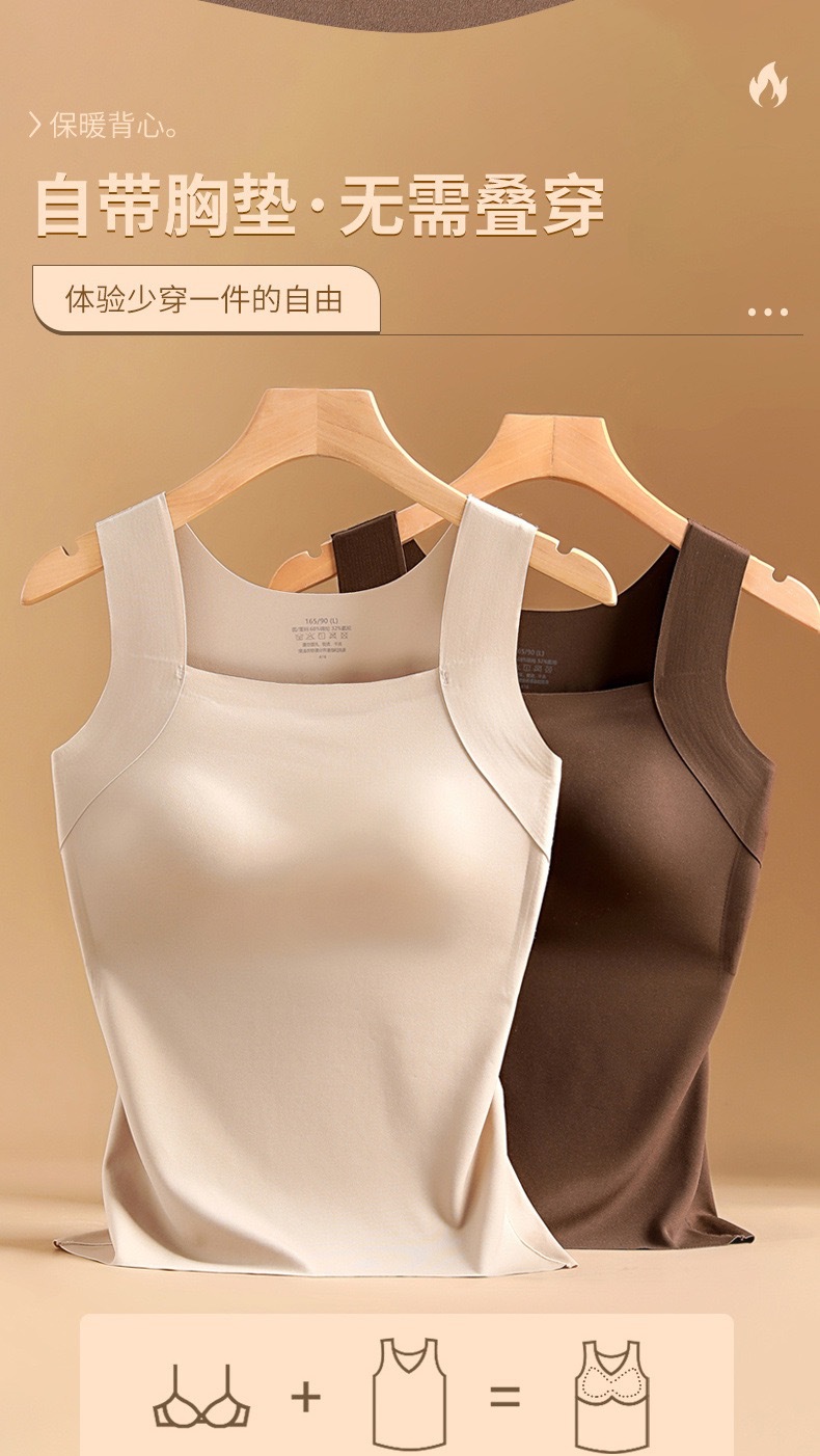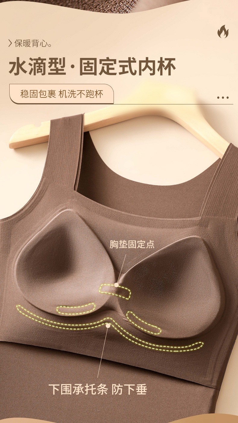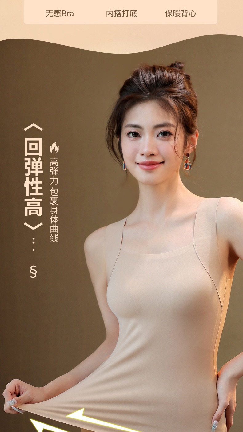 新品秋冬款雲朵無痕潤膚裸感肌底衣保暖背心女固定杯美膚打底秋衣