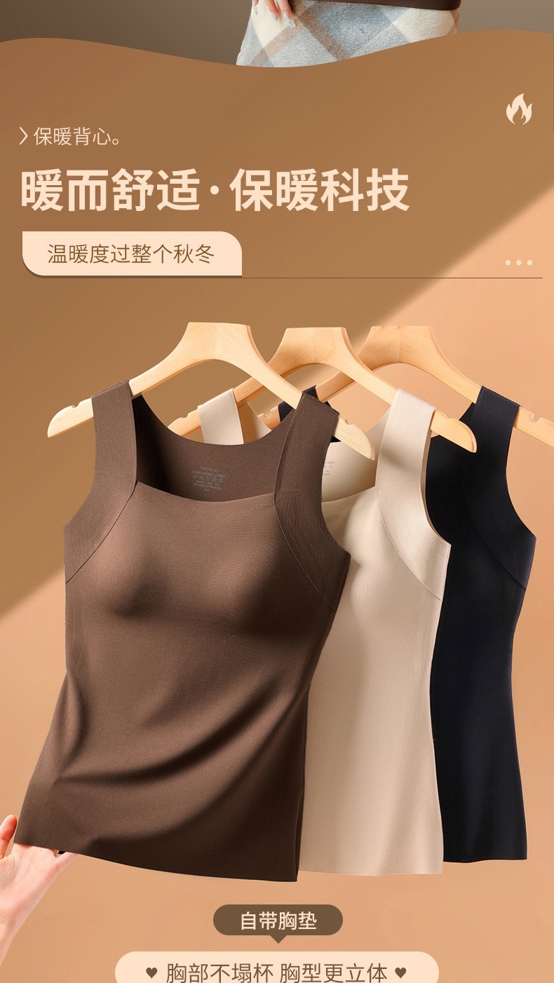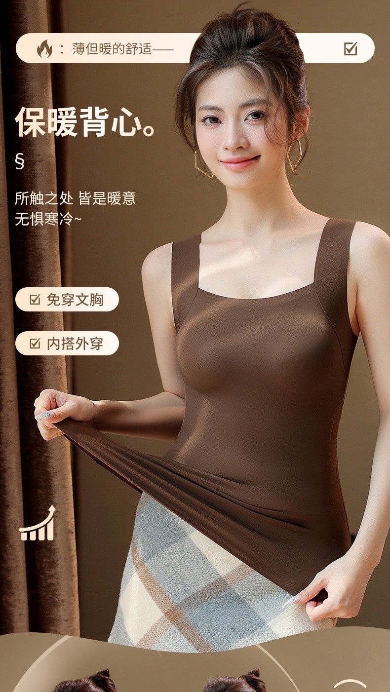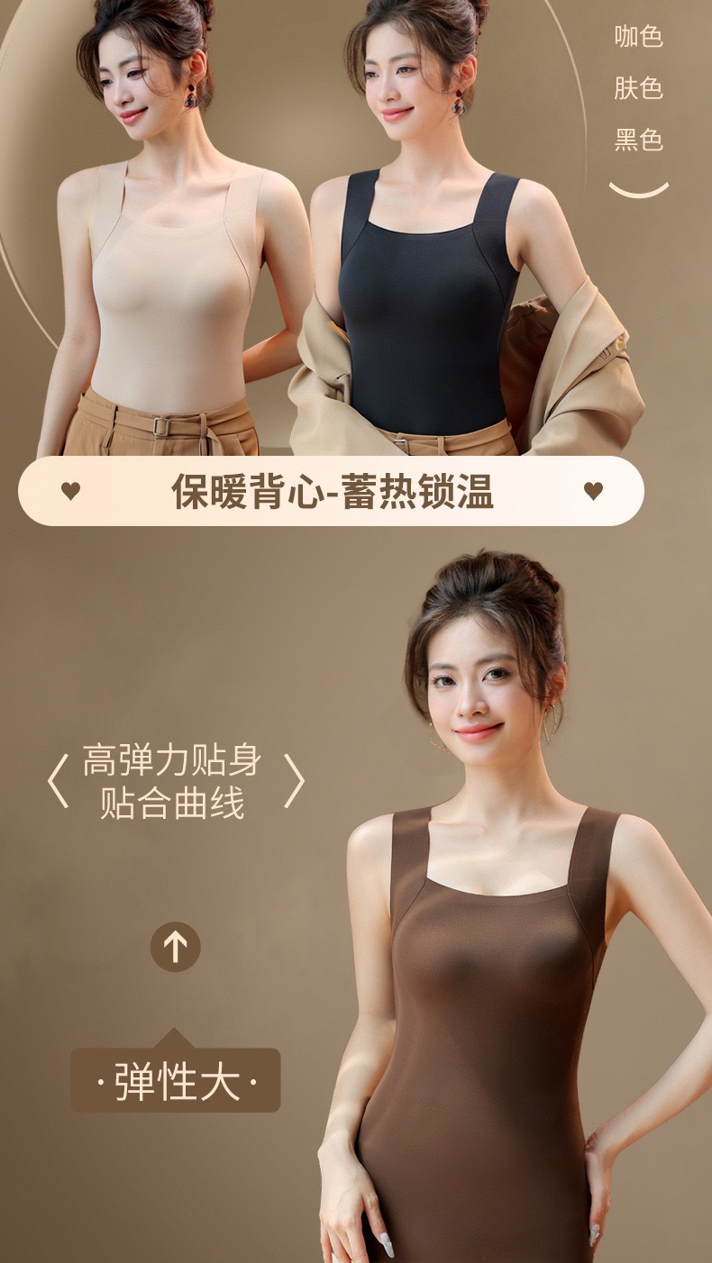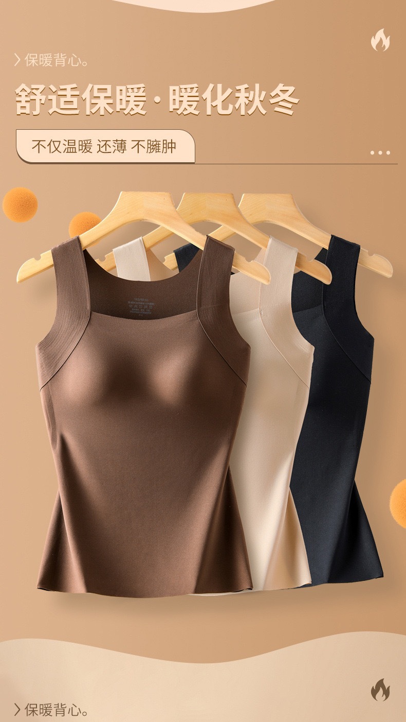 新品秋冬款雲朵無痕潤膚裸感肌底衣保暖背心女固定杯美膚打底秋衣