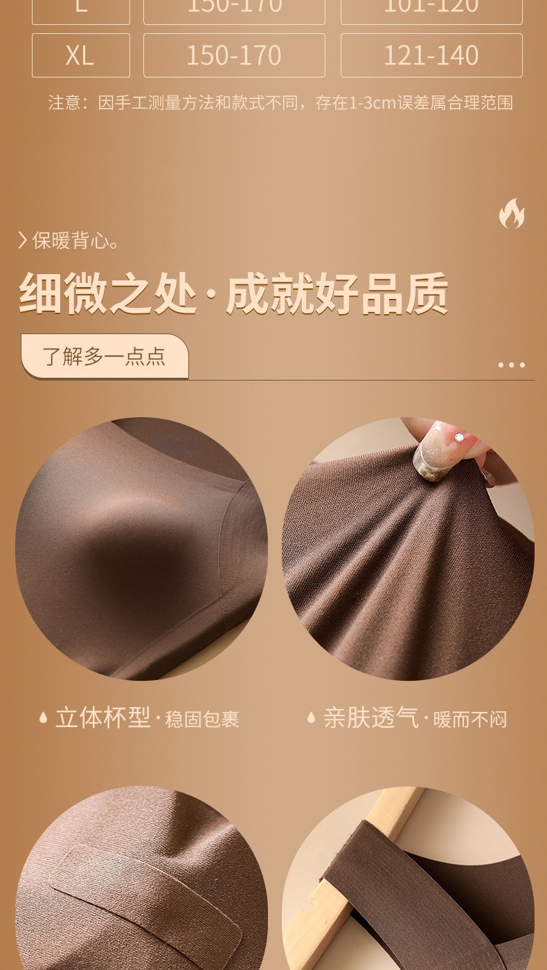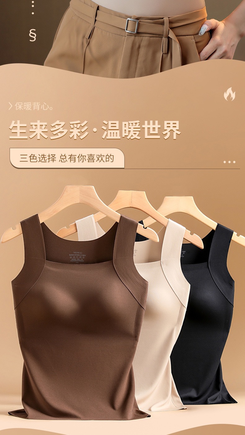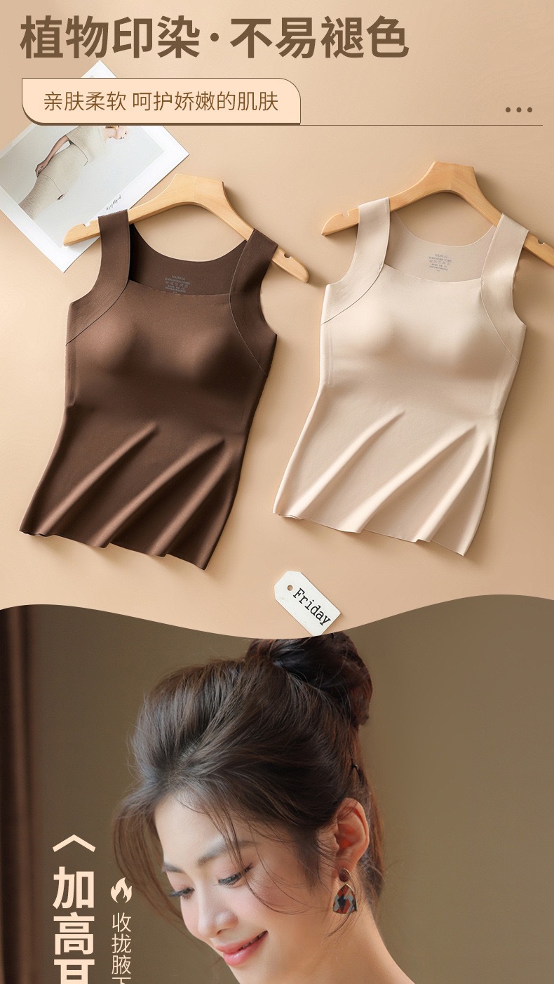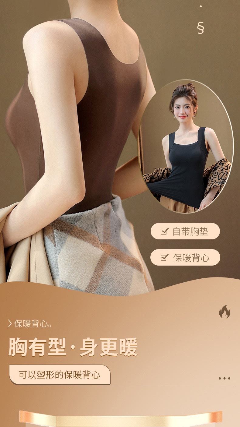 新品秋冬款雲朵無痕潤膚裸感肌底衣保暖背心女固定杯美膚打底秋衣