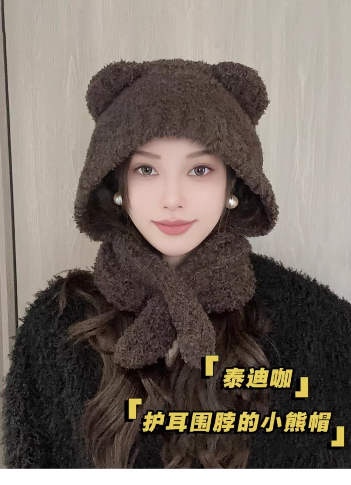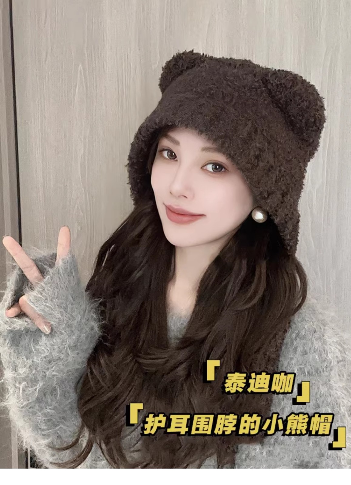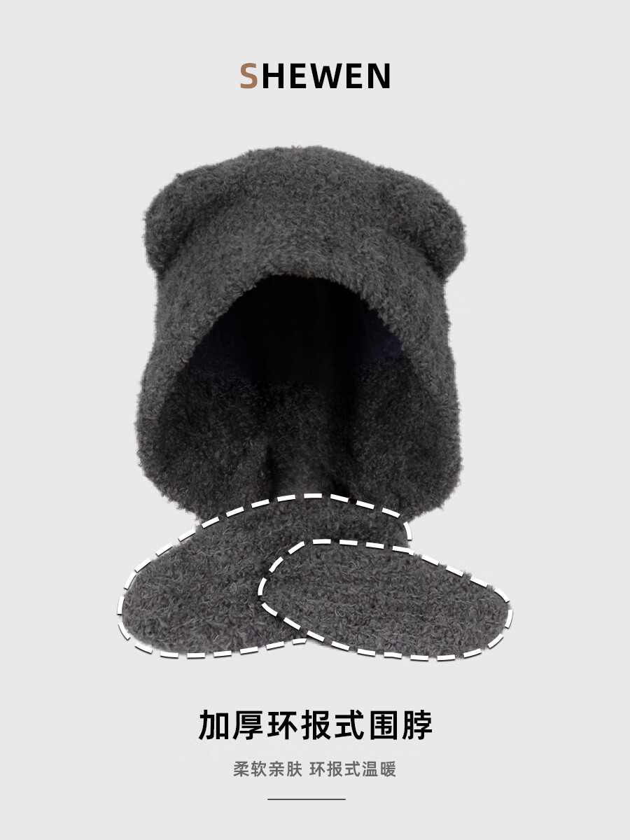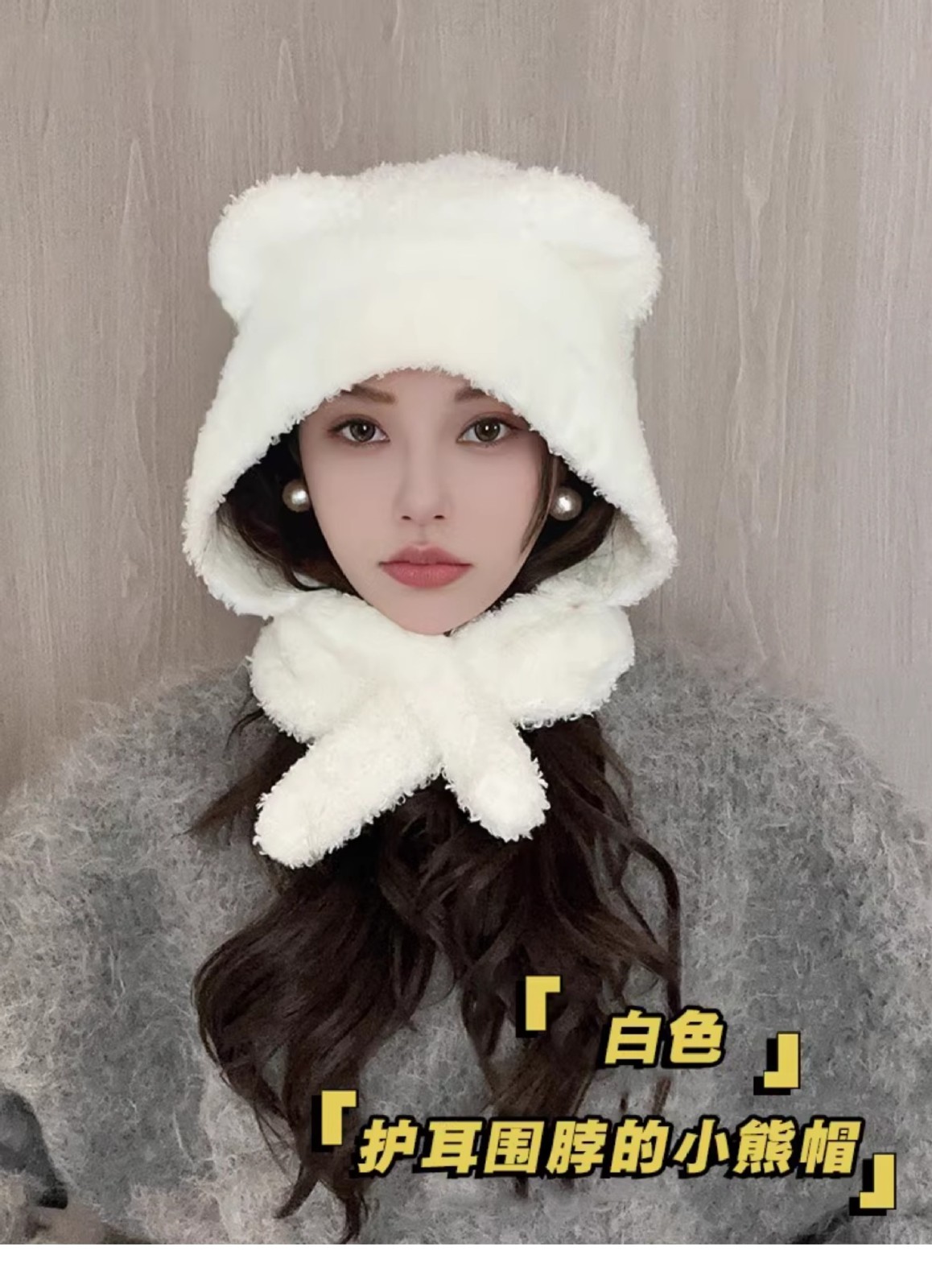 一帽多用,護耳+圍脖+保暖帽,軟糯毛絨,觸感溫柔,禦寒必備