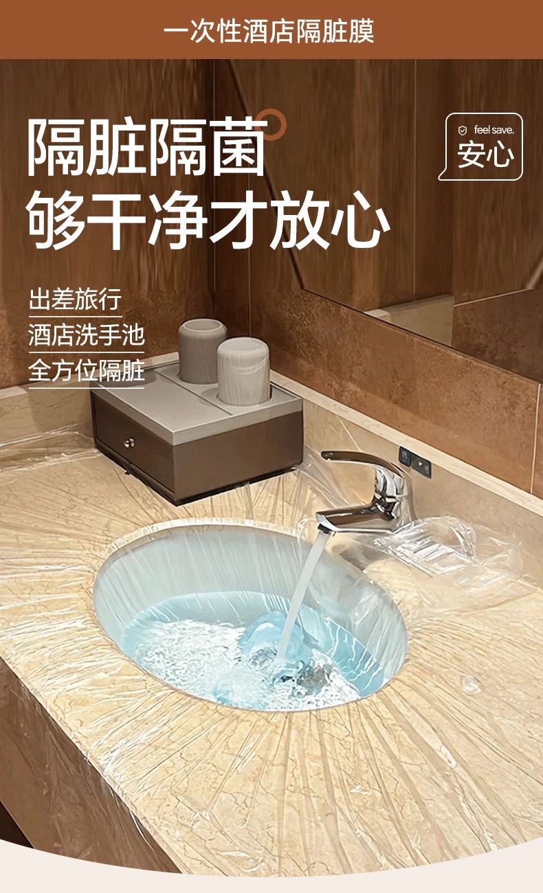 一次性酒店隔髒膜,出差旅行,酒店洗手池,全方位隔髒,延展性強,不易破損,使用更安心