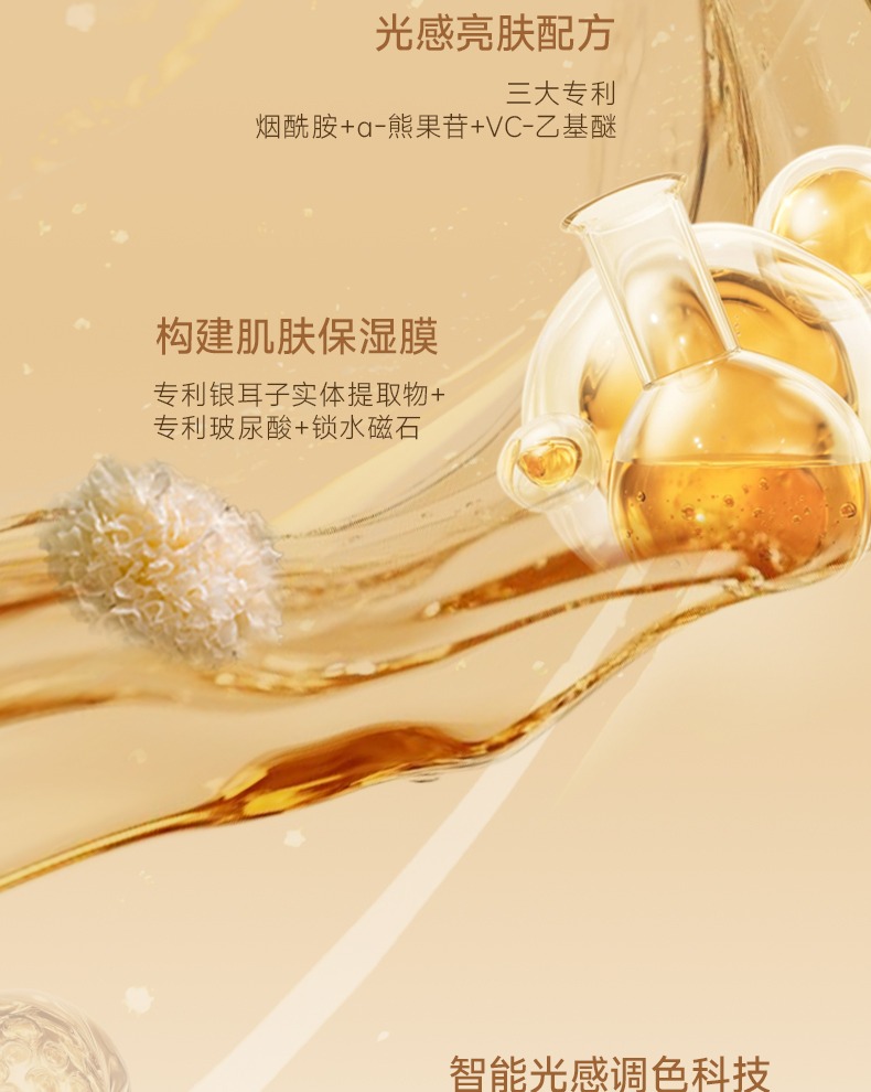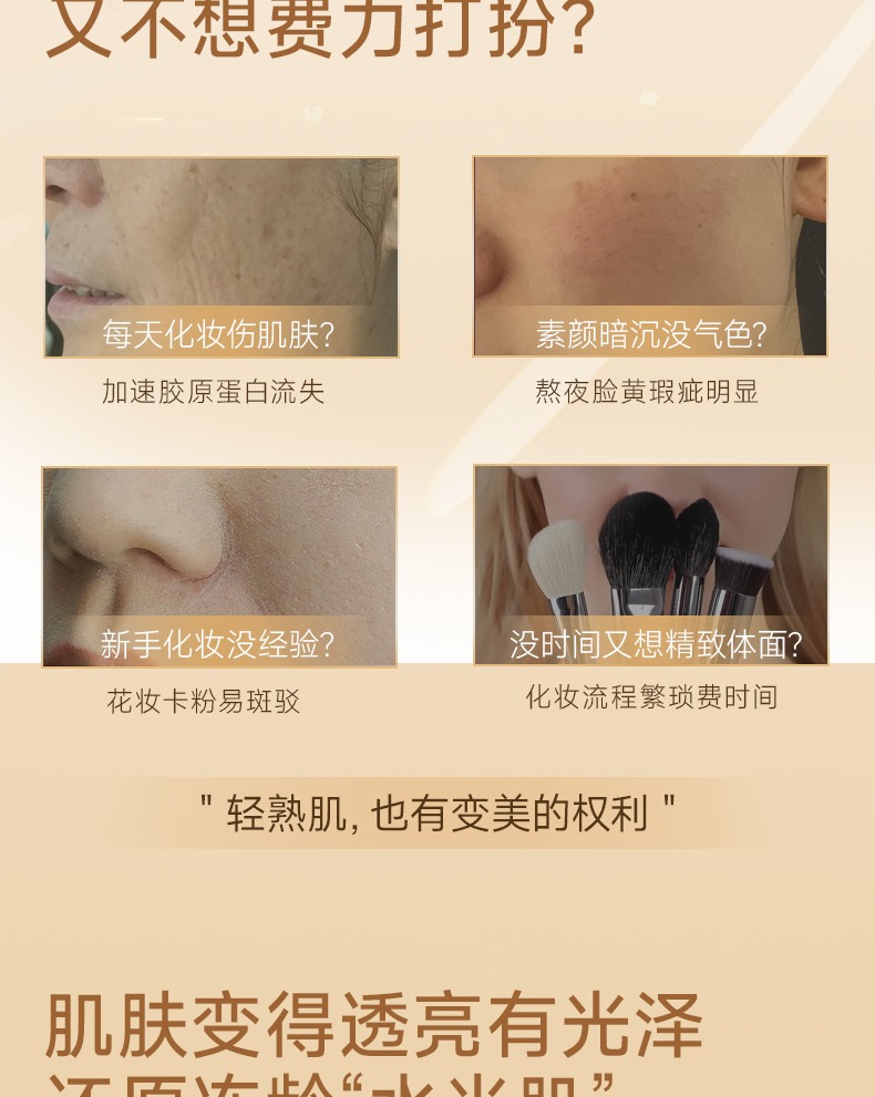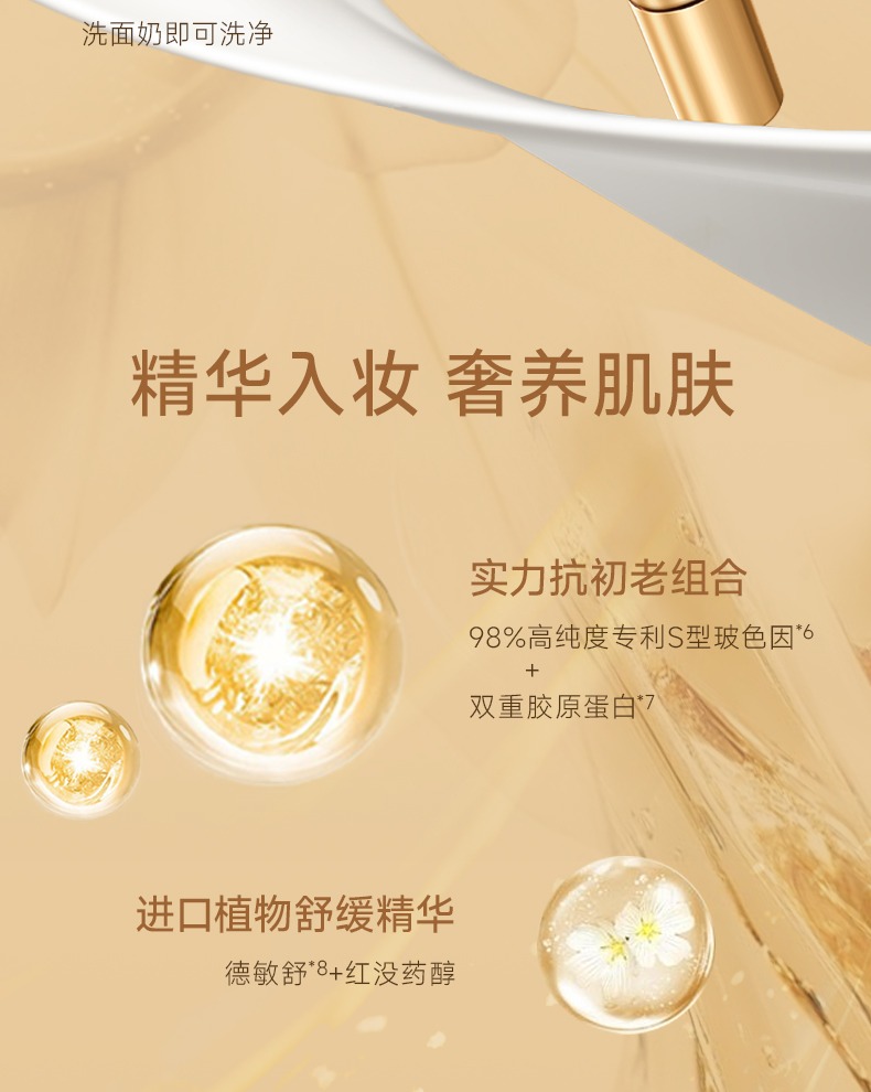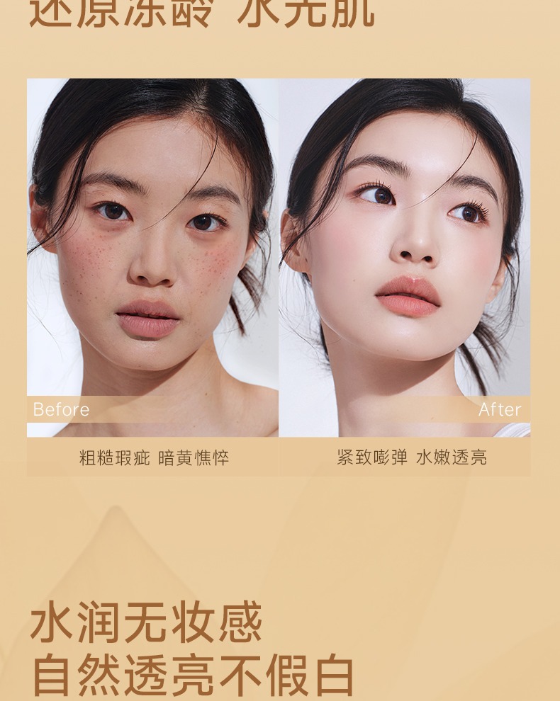 玻色因精華入妝,七分養三分妝,一抹膠原灌注,還原透亮水光肌,遮蓋瑕疵,隱匿毛孔,緊緻抗皺