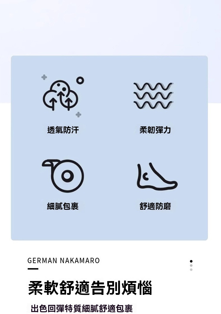 防磨緩痛核心,加厚矽膠緩衝,高跟鞋、新鞋磨腳全抵禦,透氣防汗不悶腳,立體網紋設計,夏日久穿也乾爽,拒絕悶熱異味