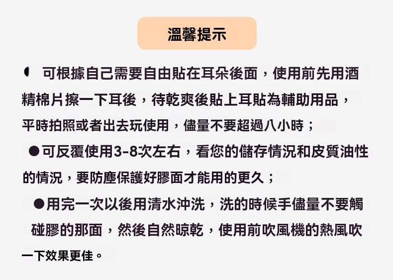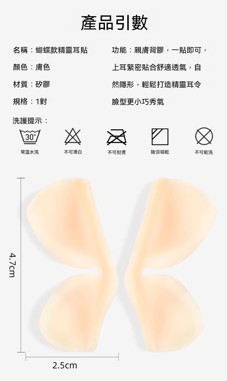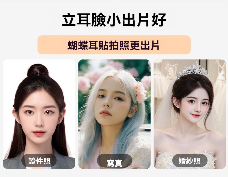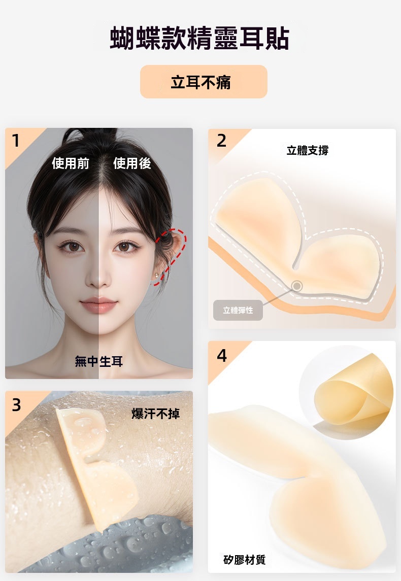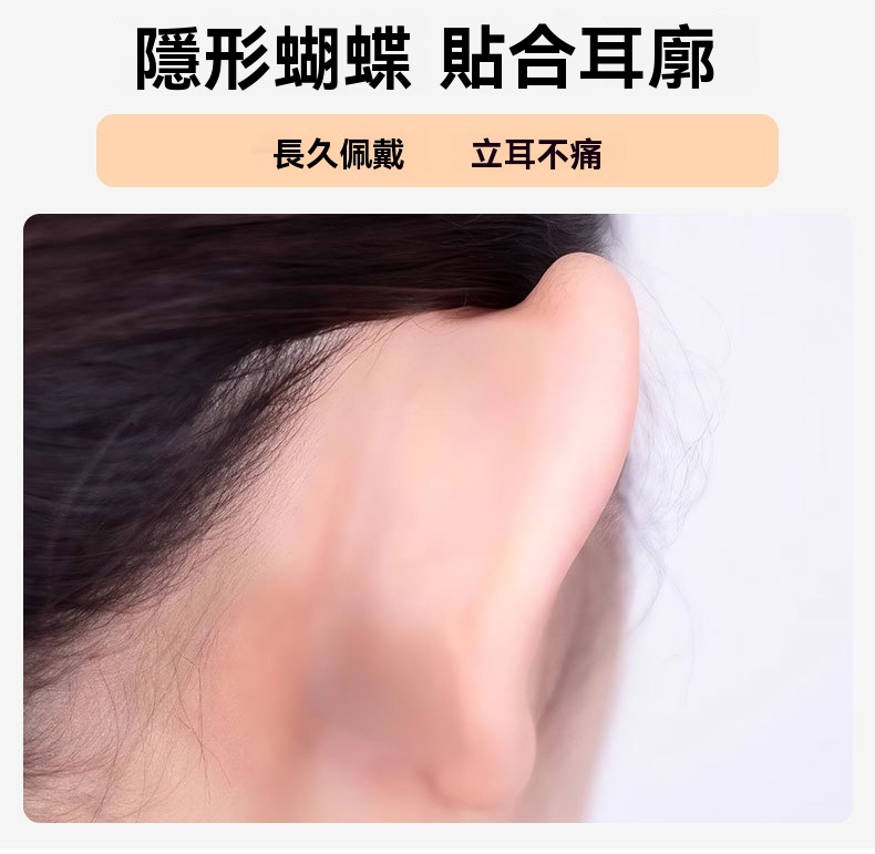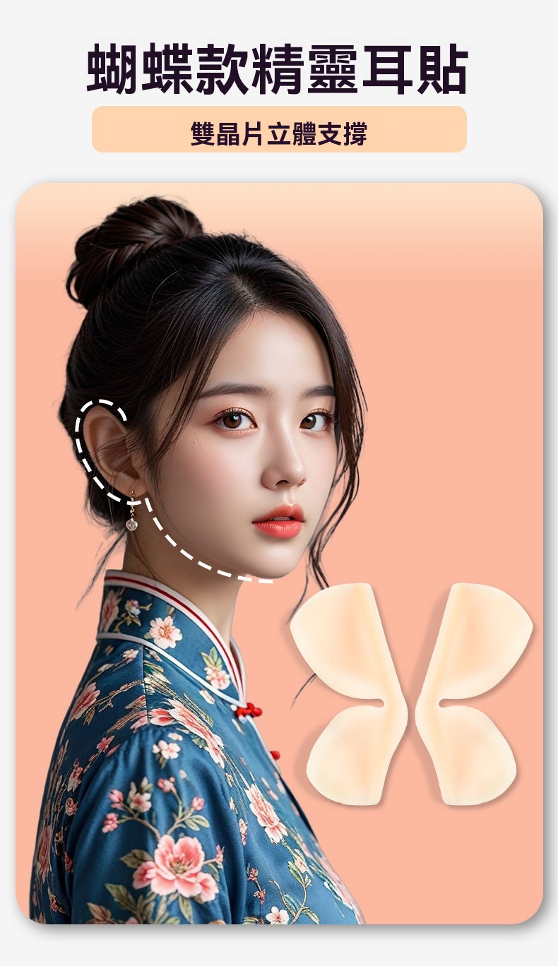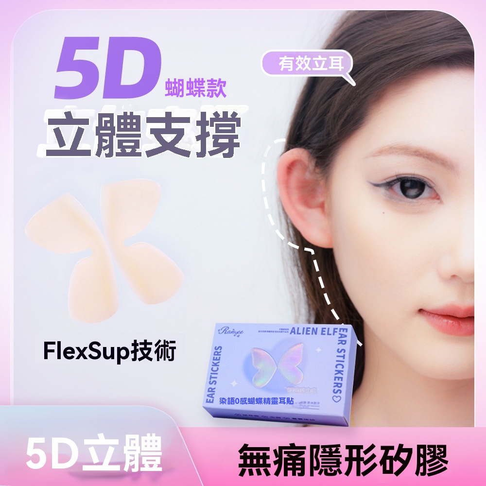 5D 立體支撐,蝴蝶仿生設計,撐起耳廓,自然顯臉小,拍照更上鏡,無痛隱形矽膠,輕薄親膚不刺激,貼久不紅不悶,敏感肌也能放心用